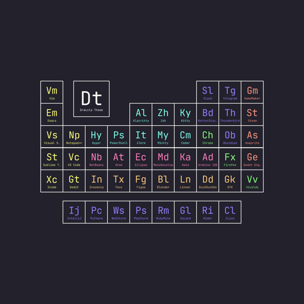 Colorful and comfortable. This t-shirt shows some of the most popular apps available for Dracula.